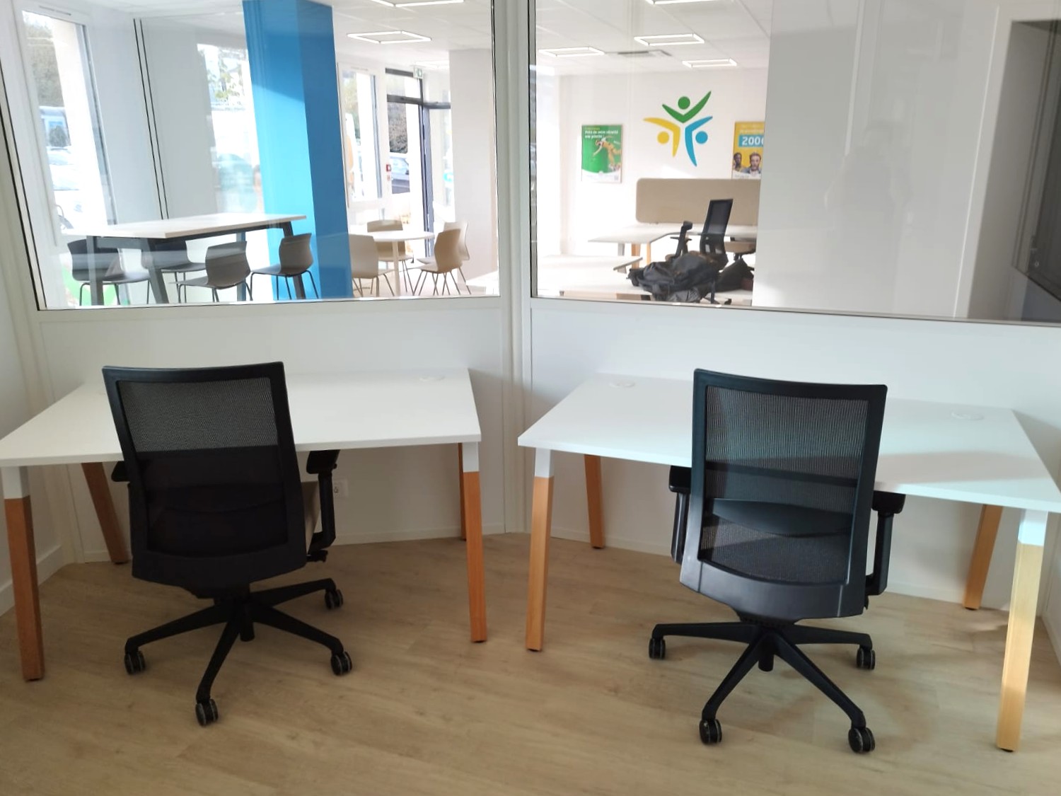 Des postes ergonomiques et sobres, composés de 2 bureaux Dialogue et 2 sièges de travail Tool.